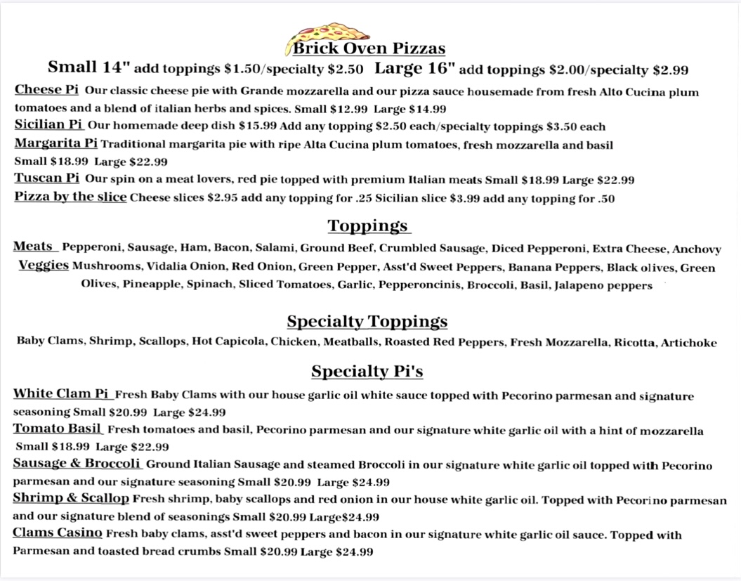 Welcome to Pi Pizza Bar, a cozy gem located at 1415 Pinehurst Rd, Dunedin, FL. This inviting spot is not just a pizza joint; it’s an experience, as highlighted by customer favorites. Start your meal with delectable Caprese Skewers or the zesty Antipasto Rotini, featuring homemade Italian dressing. But the stars of the menu are undoubtedly the pizzas, acclaimed for their flavorful crust and generous toppings that patrons rave about, saying it's the best in Dunedin!